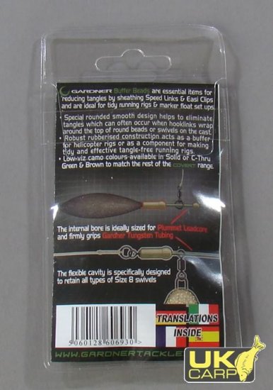 Gardnerバッファービーズはスピードリンクとイージークリップをカバーすることで絡まりを防止し、ランニングリグやマーカーフロートをすっきりセットアップするのにぴったりです。