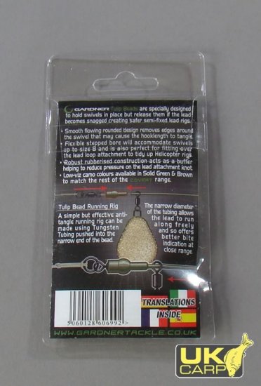 Gardner チューリップ ビーズによりスイベルの位置をホールドしつつ、オモリの引きがあればリリースするという、より安全な半固定のリグを作れます。